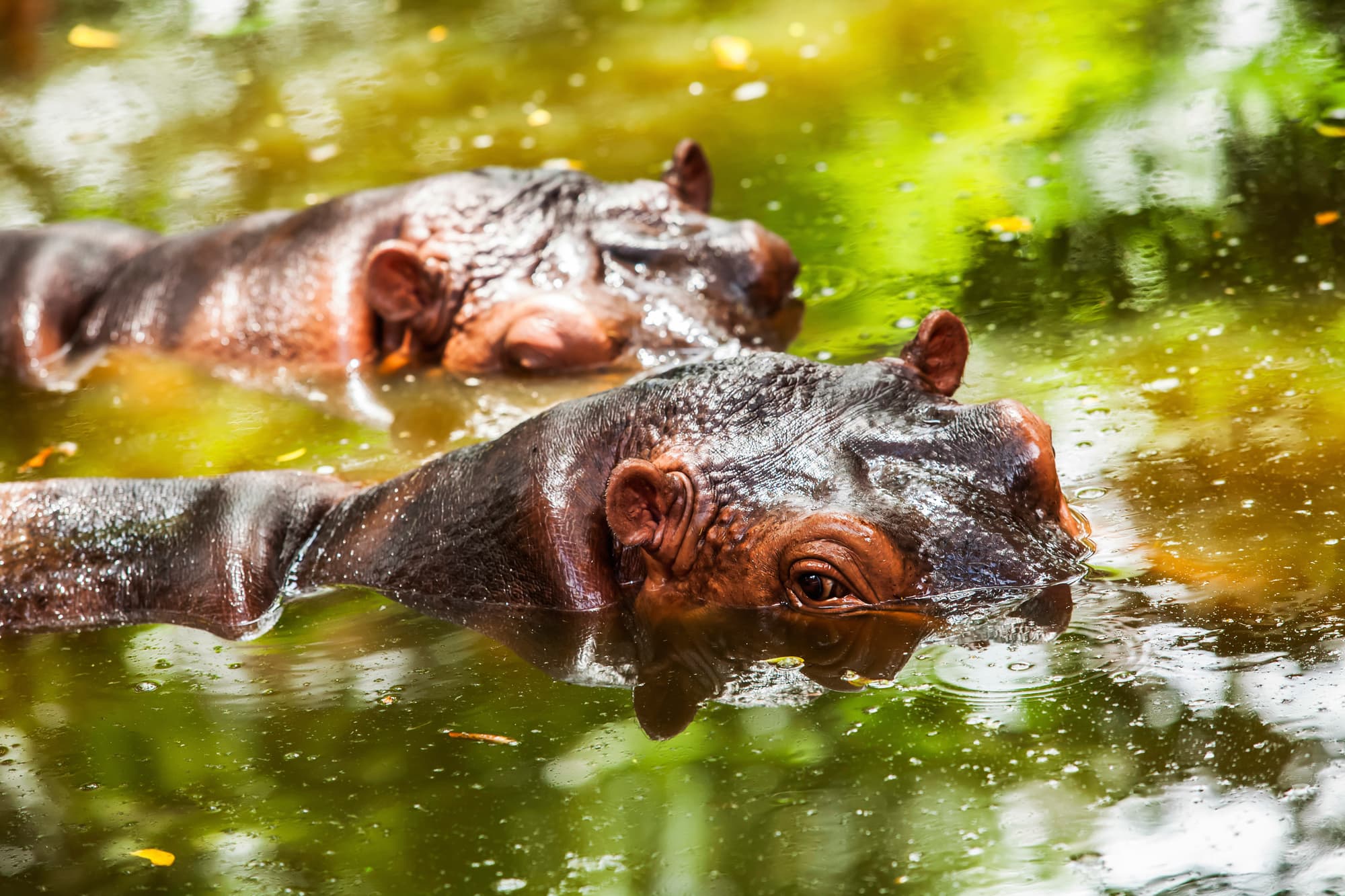 The largest national park in Zimbabwe, Hwange covers 5,640sqmi (14,600sqkm) of mopane and teak woodlands and grasslands. It is home to more than 100 mammal species and 400 bird species including all of the specially protected animals in the country. The most famous inhabitants are the elephants and wild dogs, and it is the only place where gemsbok and brown hyena live in reasonable numbers in Zimbabwe.