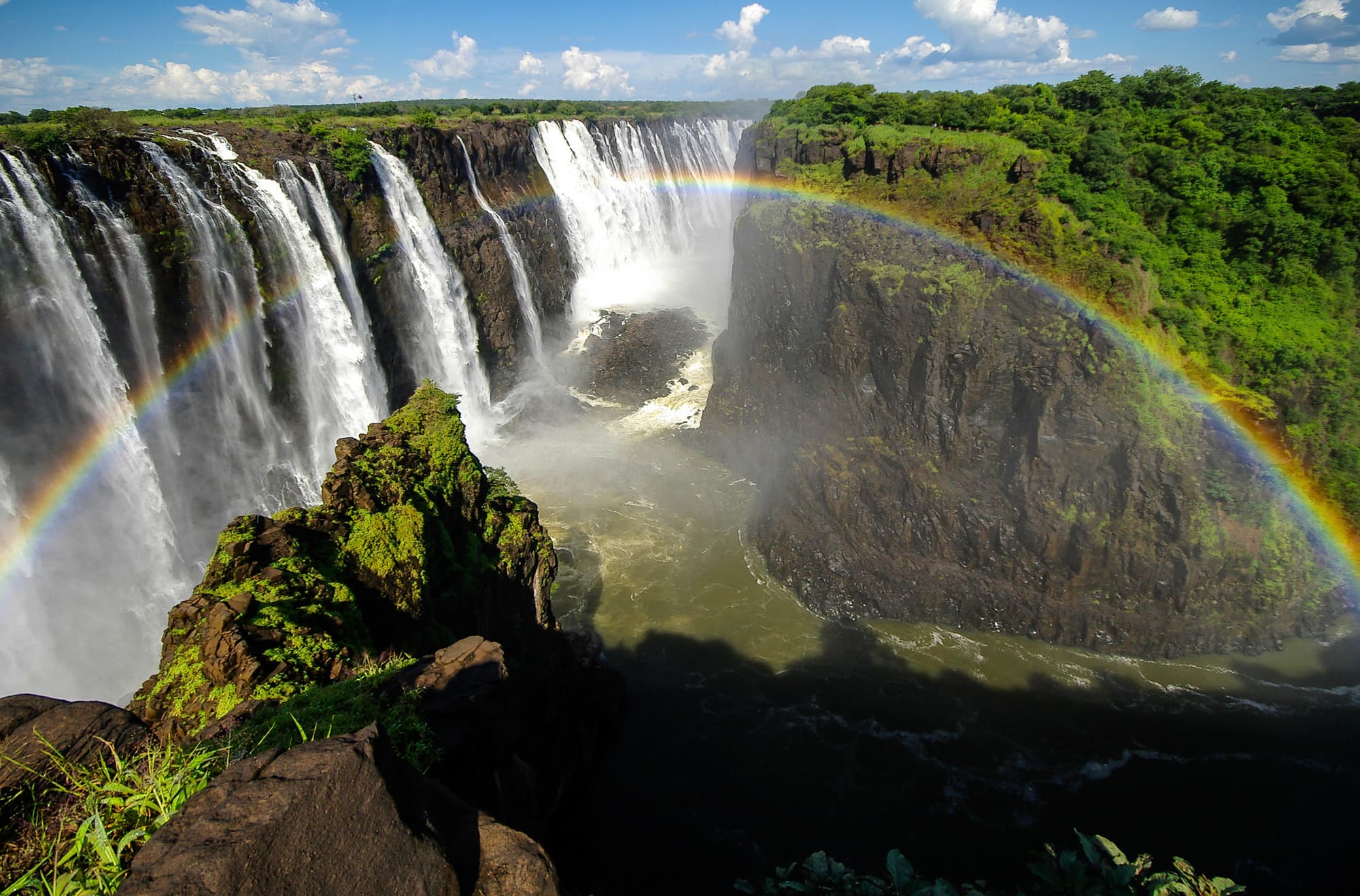 Measuring 5,580ft (1,700m) wide and 330ft (100m) high, Victoria Falls is the largest waterfall in the world. The volume of water changes with the seasons but, when full, the spray rises into the sky – a phenomenon that has given the falls their local name Mosi o Tunya, the Smoke that Thunders. They are a site to behold and one that impressed Dr David Livingstone so much that he said: 'Scenes so lovely must have been gazed upon by angels in their flight.’
