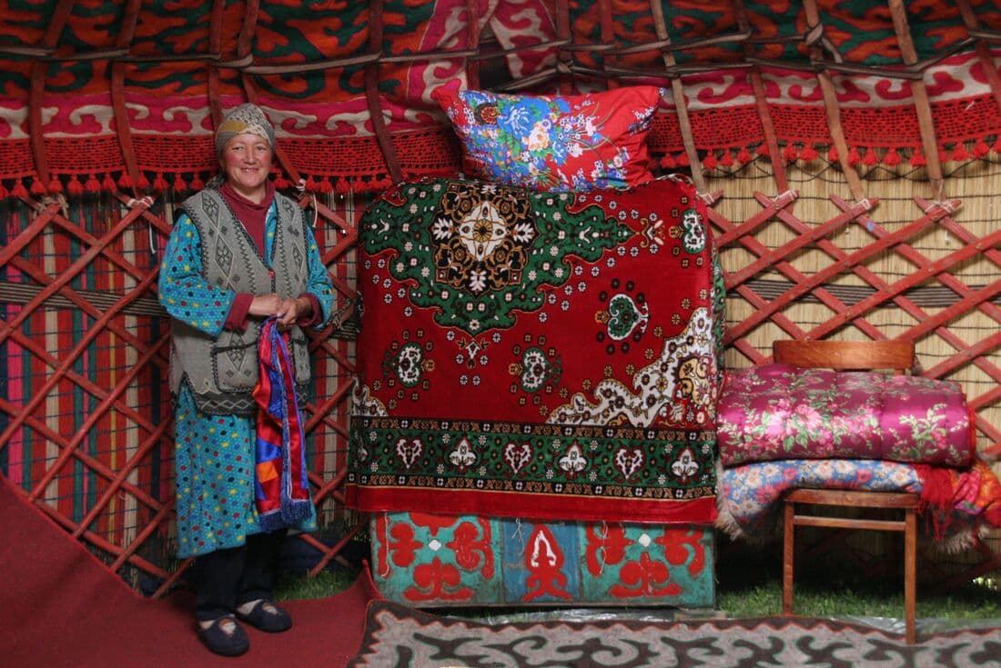 Day 5: Issyk KulAfter a relaxed breakfast today, you’ll start the drive to Lake Issyk Kul – one of the largest lakes in the world, 178 km long and 60 km wide. Along the way, stop at Burana Tower – a large minaret in the Chuy Valley – and visit the monument and museum. You’ll then be welcomed into the home of a local farming family nearby for a homemade lunch. Chat with the locals, then continue to Kyzyk Tuu village. When you arrive, meet with a local craftsman who keeps the ancient tradition of yurt making alive. Head to a workshop where the craftsman will show you how they’re made with no electrical tools and gain an insight into how these iconic structures are built, including the process of making Kiiz (the felt layers that cover the yurt). Maybe even have a go at assembling your own! Tonight, you’ll test your nomadic skills with a night in a traditional yurt camp – these yurts were made by the craftsmen in the local village, so you know you’re getting the authentic experience. After a walk with your group to admire the landscape, gather around the campfire for dinner under the stars.
